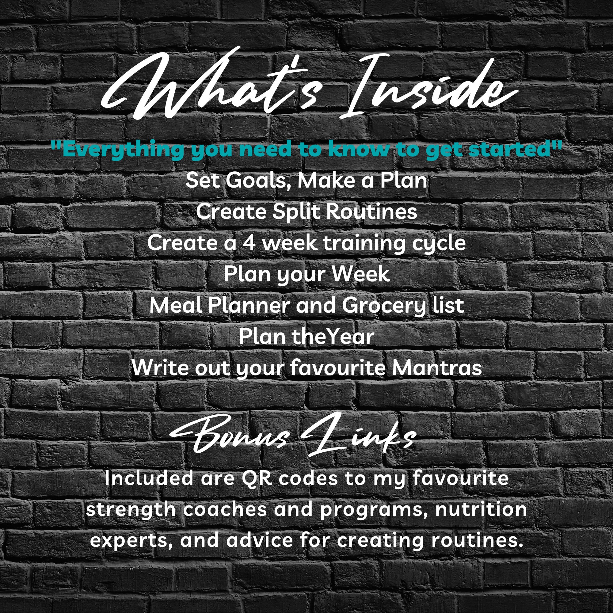 Included are QR codes to my favorite strength coaches and programs, nutrition experts, and advice for creating routines.