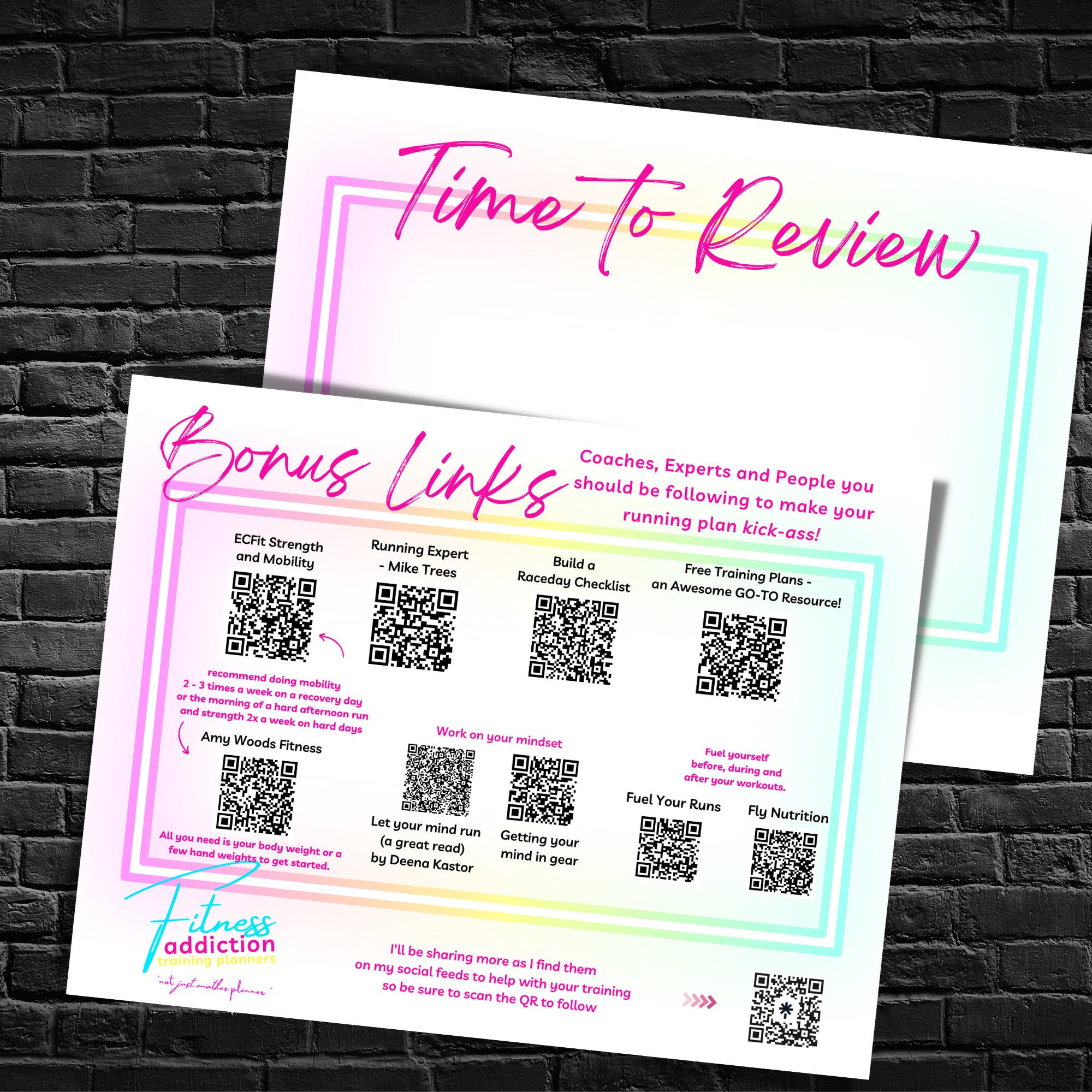✨ INCLUDES Bonus Links ✨ to my favourite running coaches and experts who share training tips, workouts, and recipes that will help you in designing and building a training plan. Be sure to scan them!