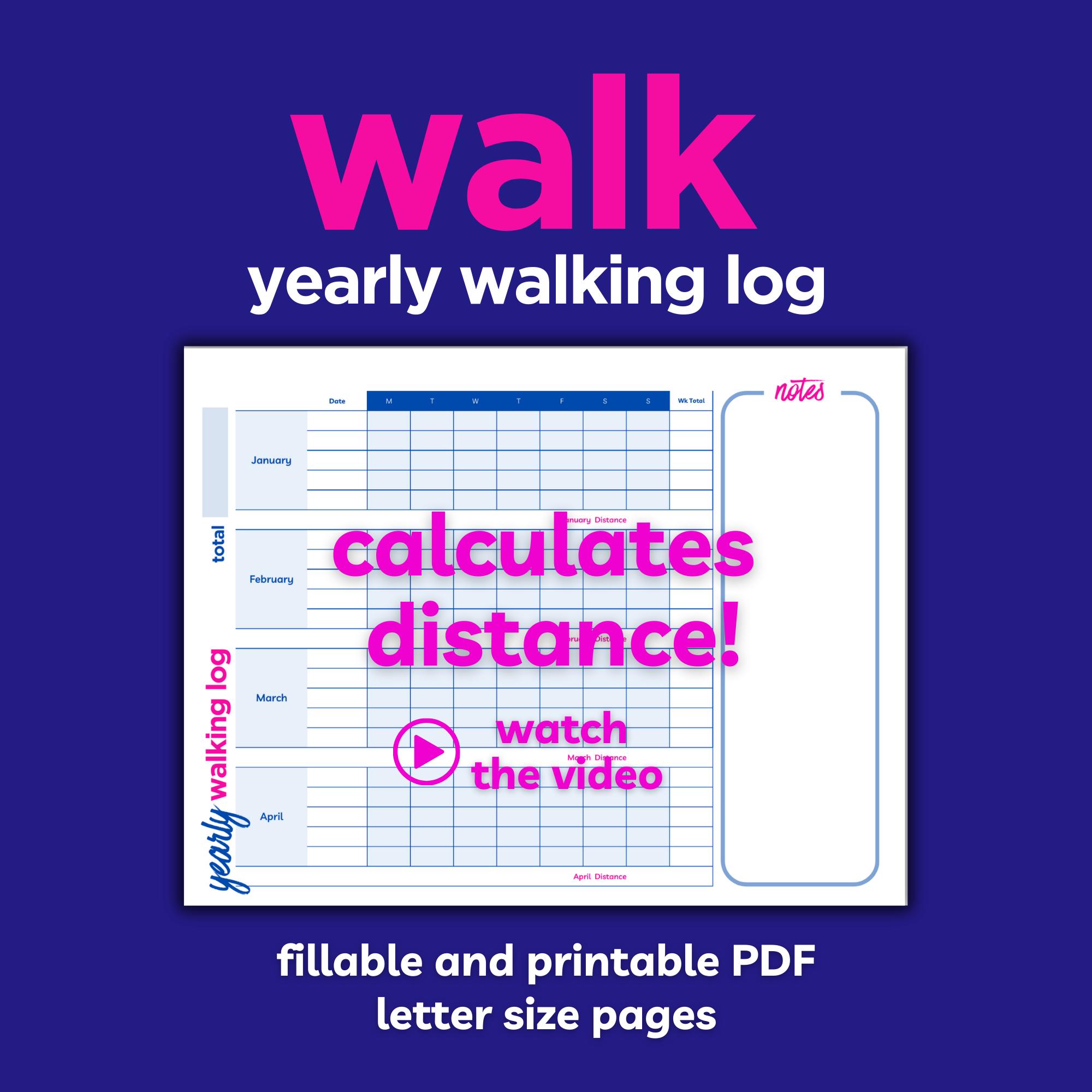 Track your yearly walking mileage on one printable and fillable letter size sheet.