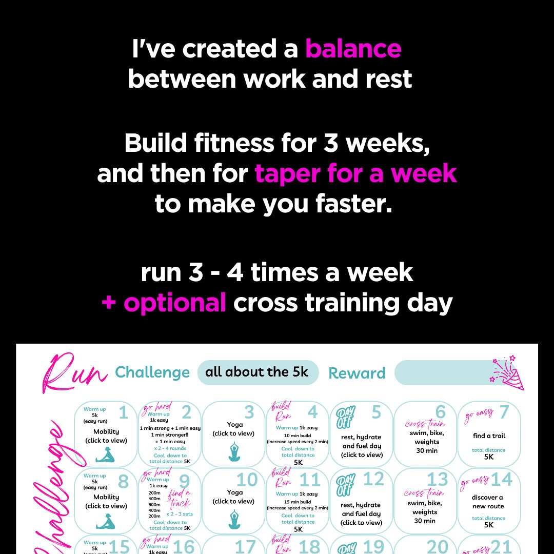✨5K RUN WORKOUTS - We'll run hills, intervals, tempo, build runs, trails, gratitude runs and more.