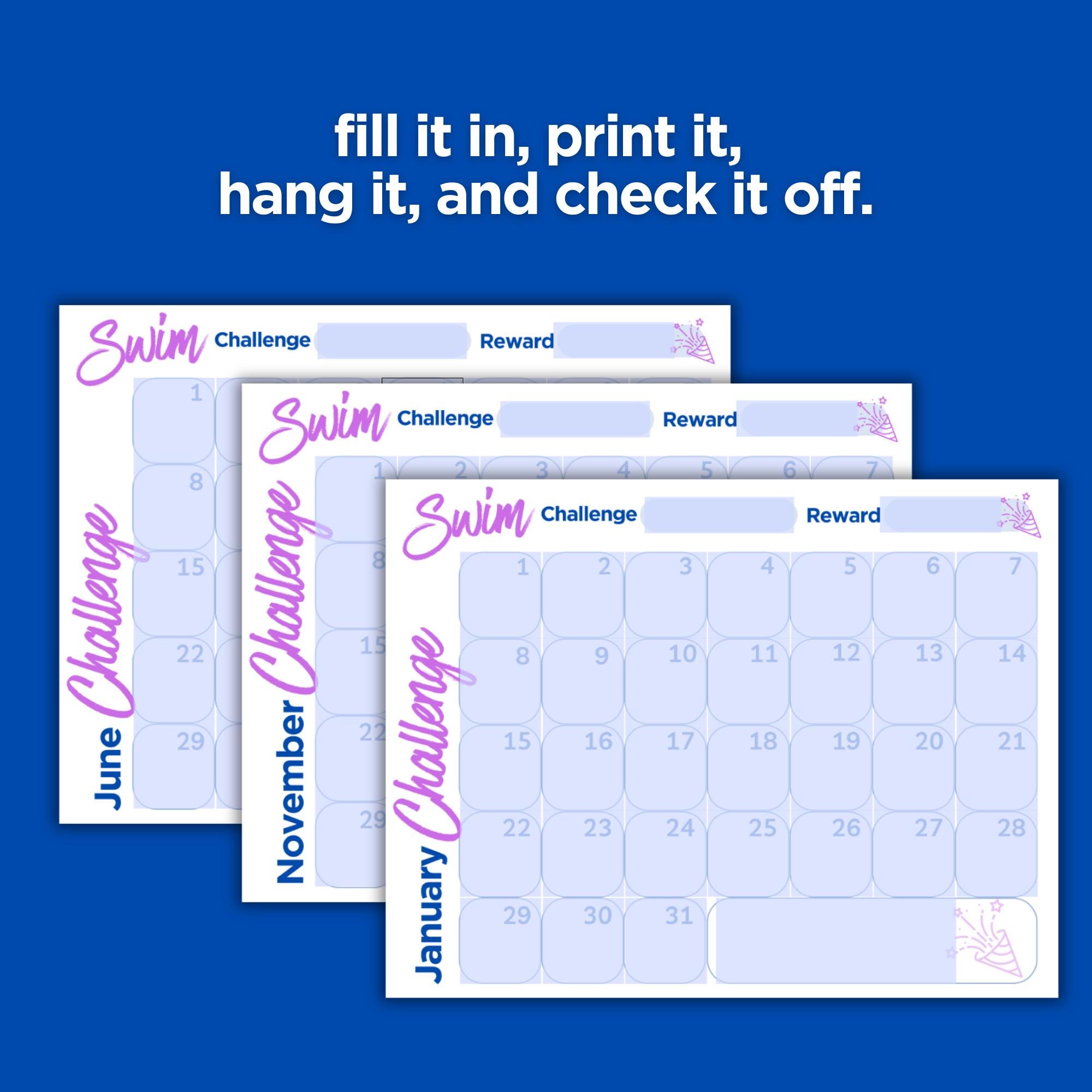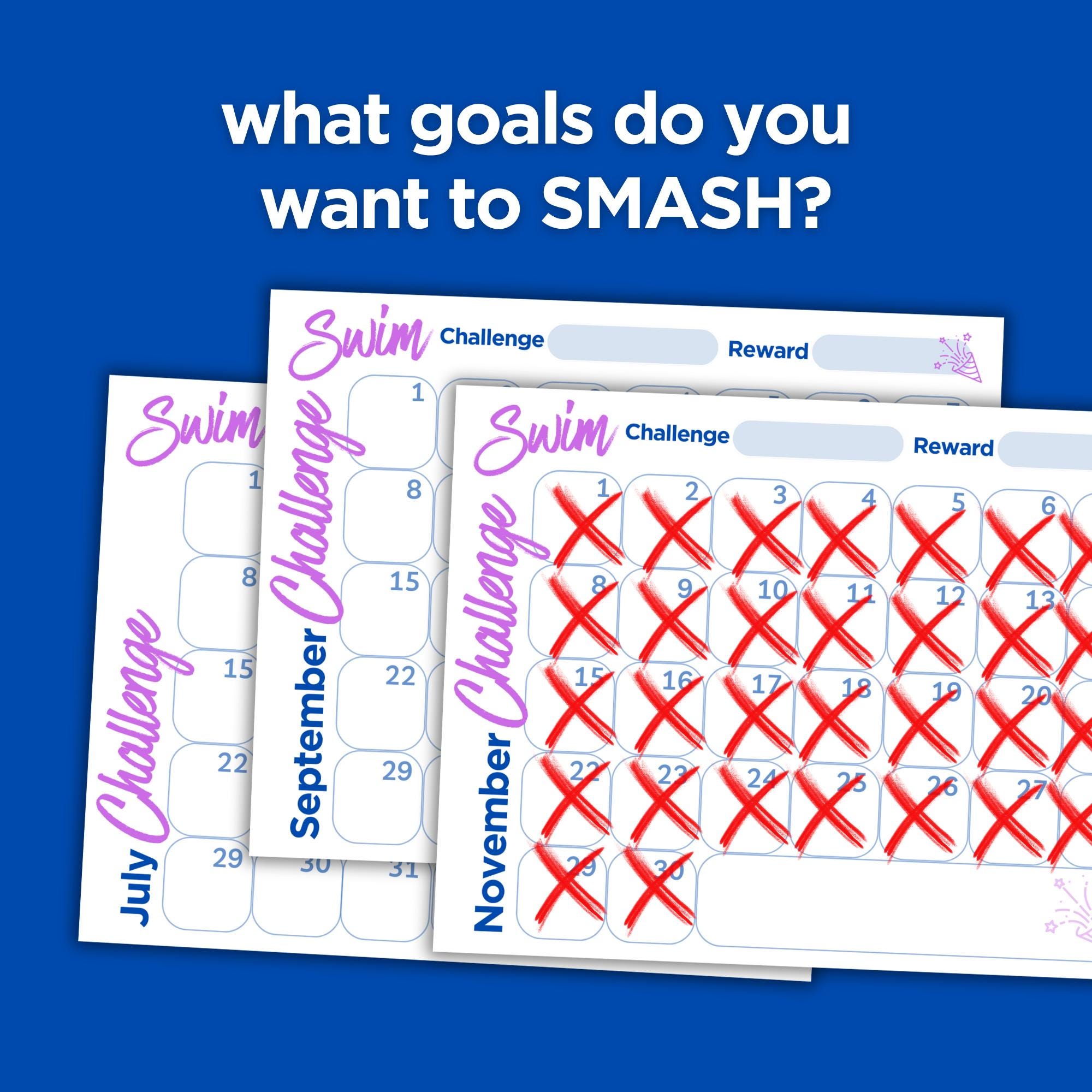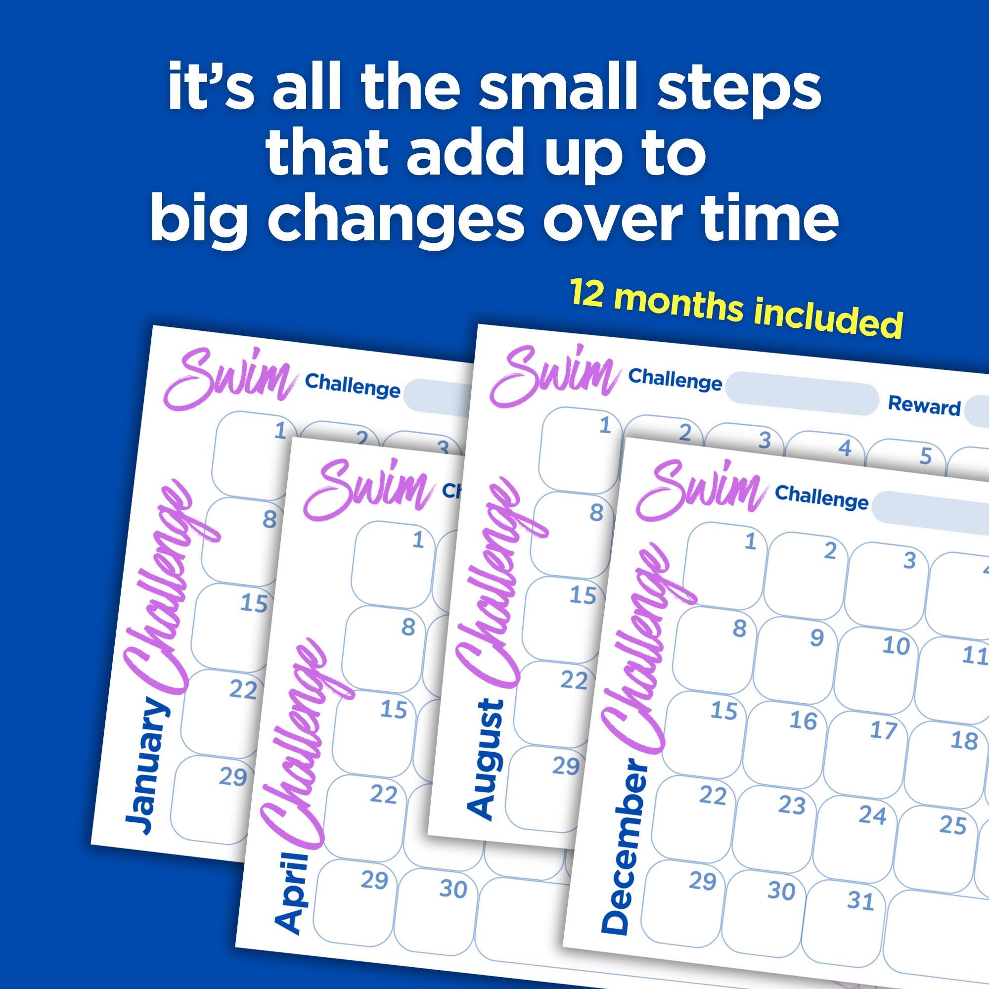 Create 365 days, 12 months of swimming challenges to keep you motivated.