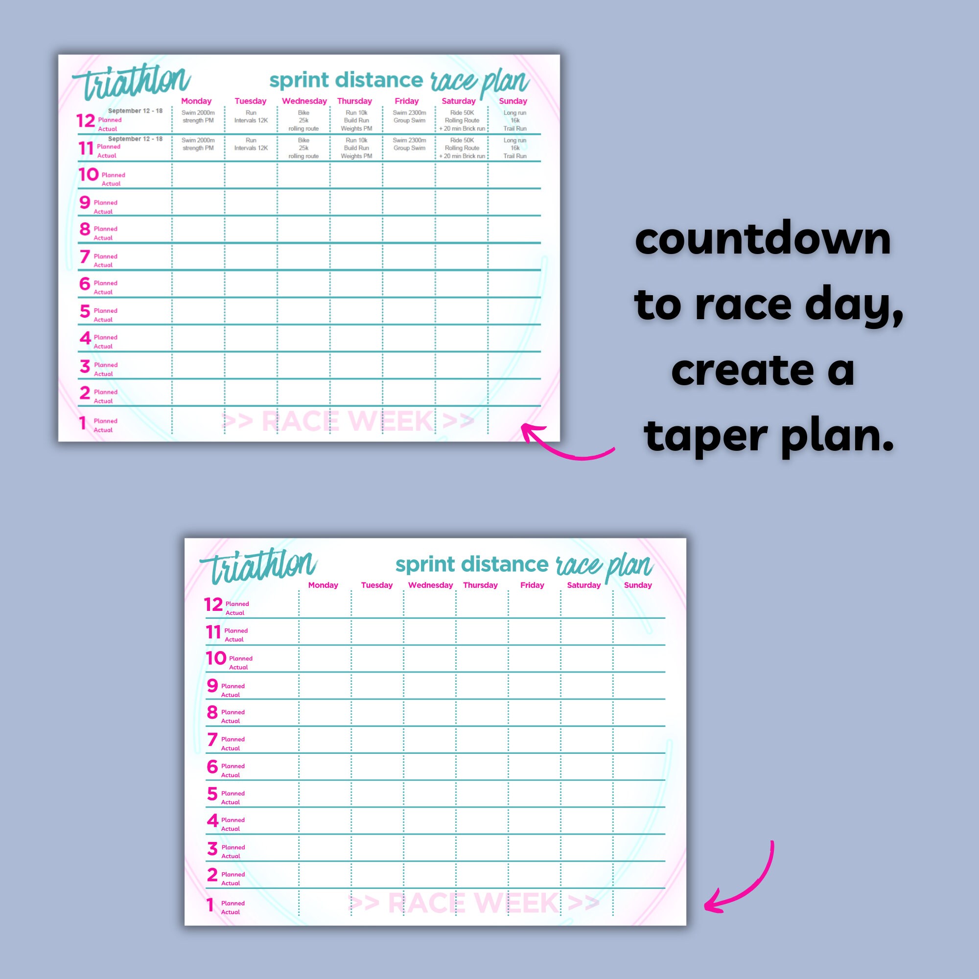 Create the ultimate 12-week training plan for a sprint distance triathlon race and smash it!