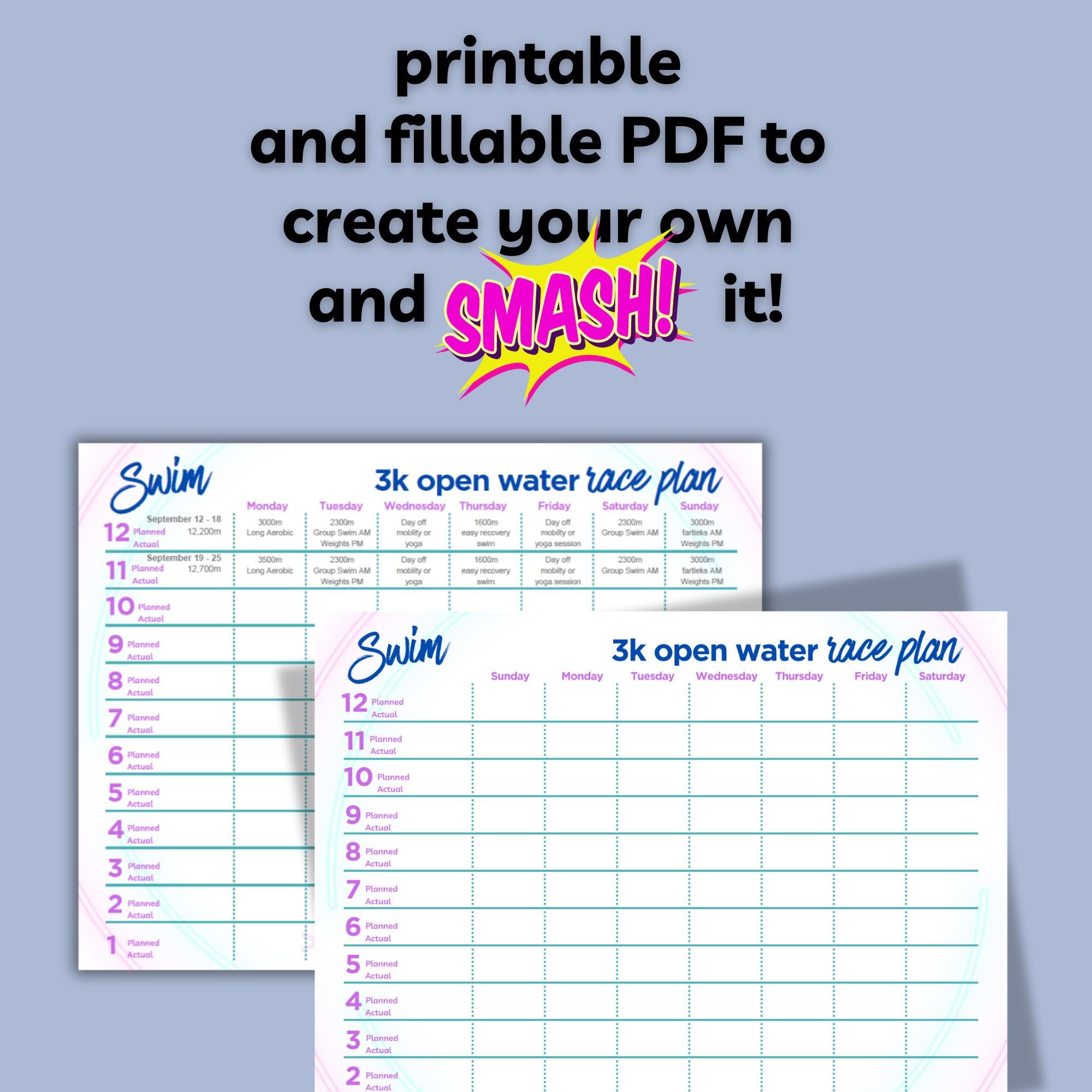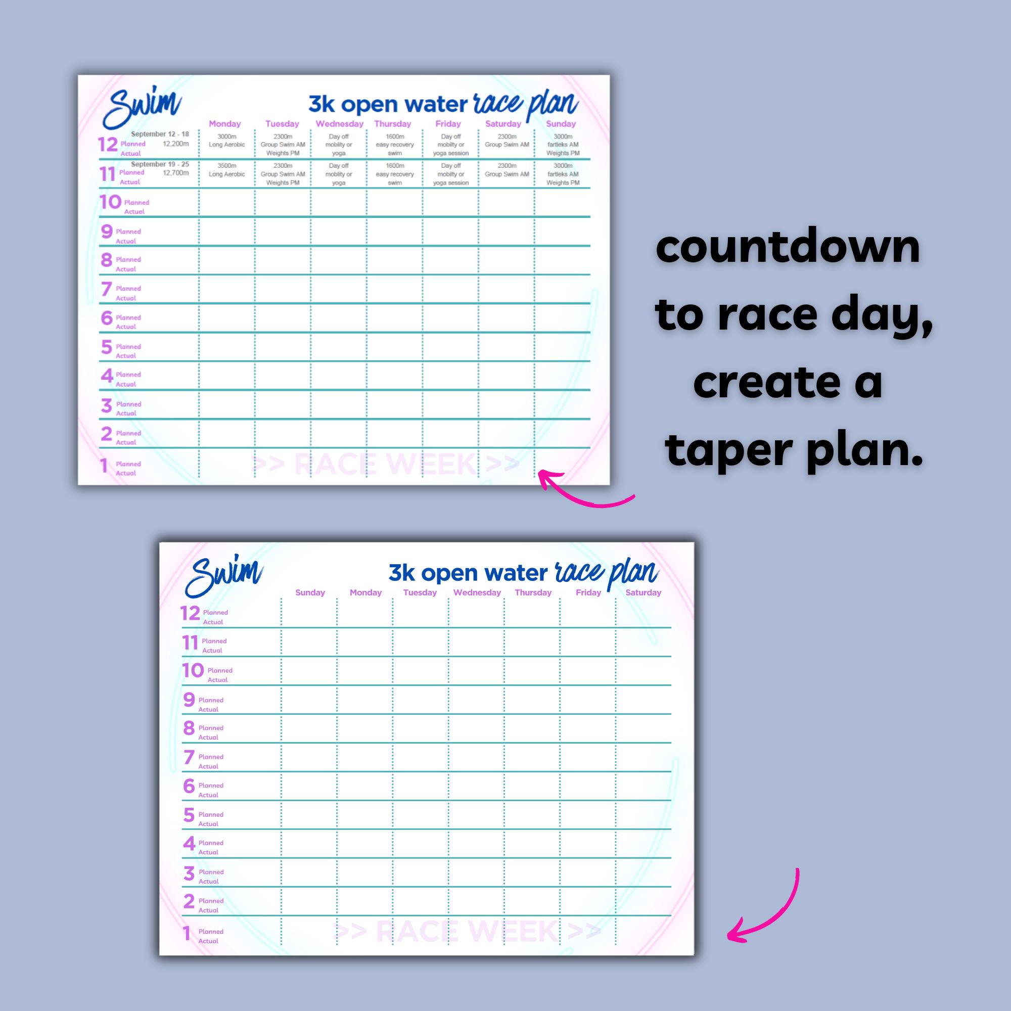Create a 12-week training plan for a 3-kilometre (3K) open water swim race and smash it!