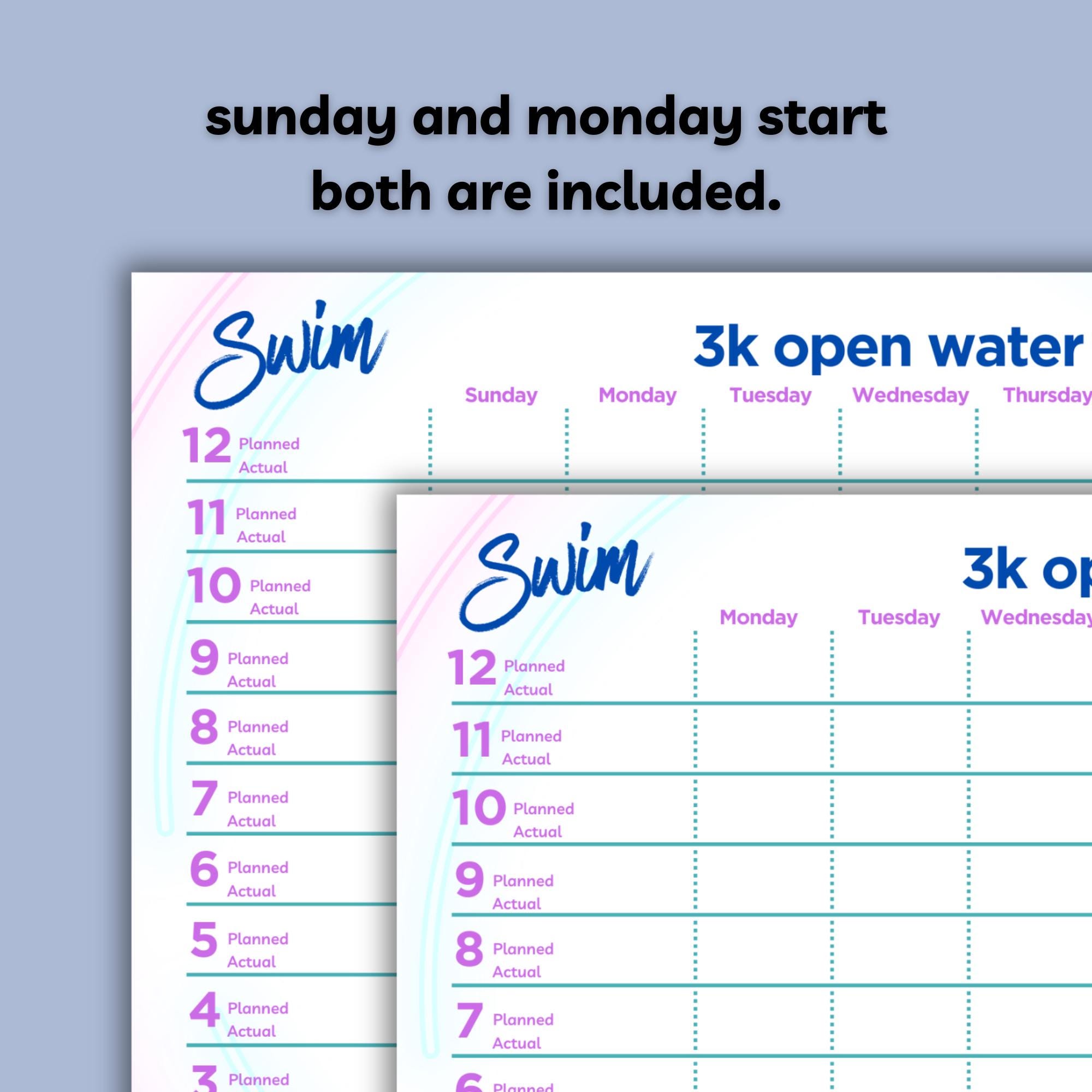 Includes 4 PDF files - sunday and monday starts