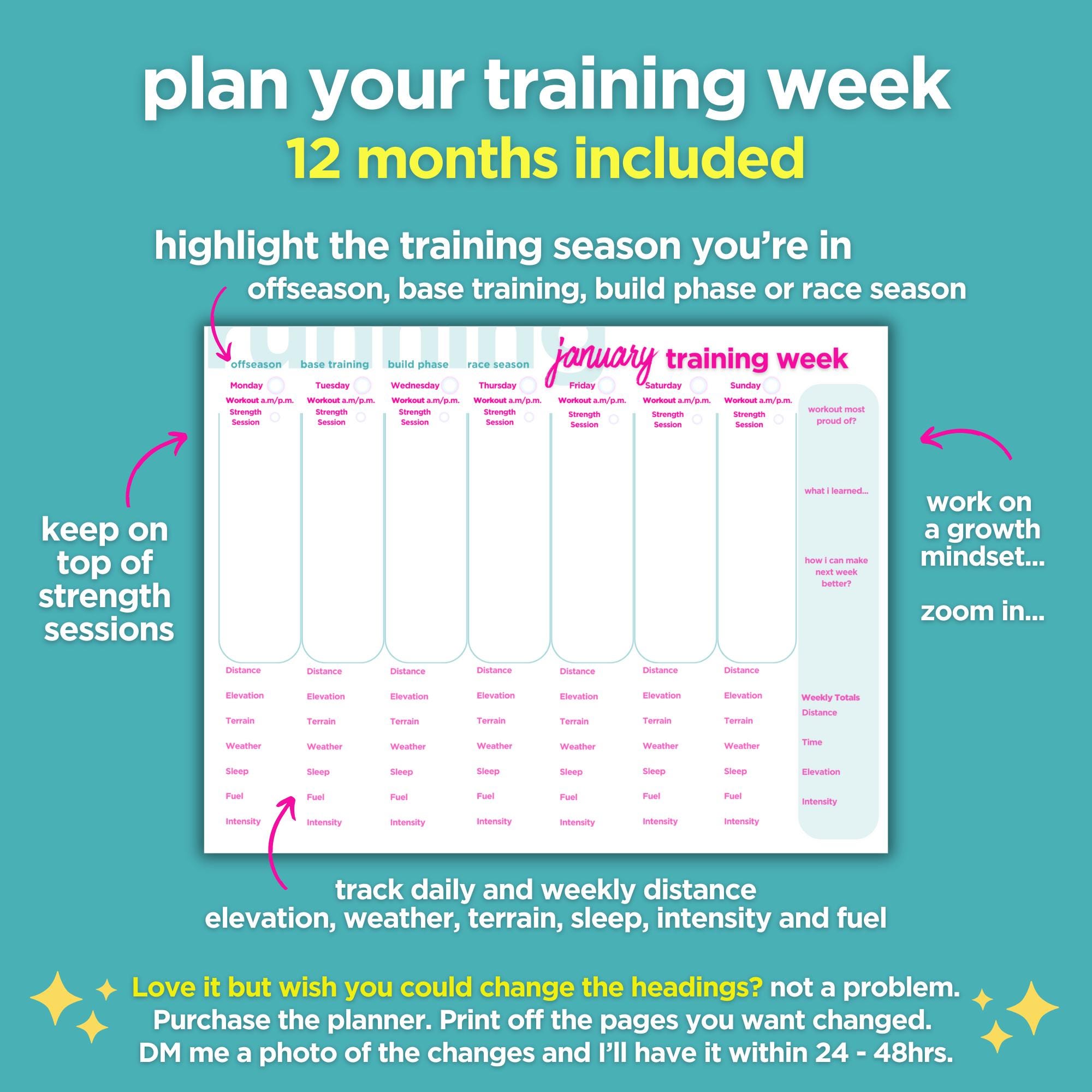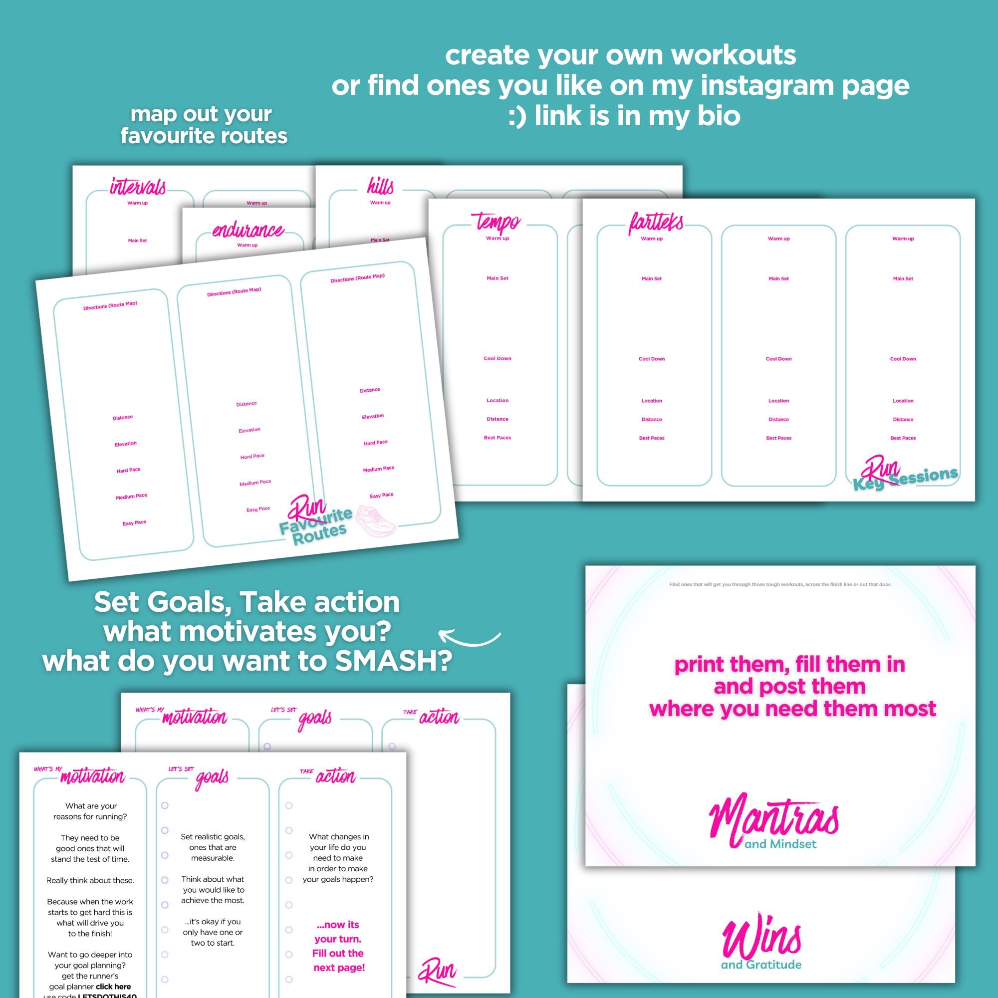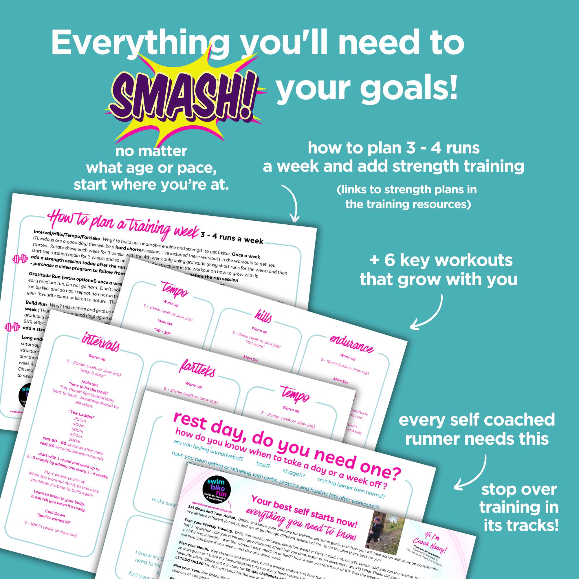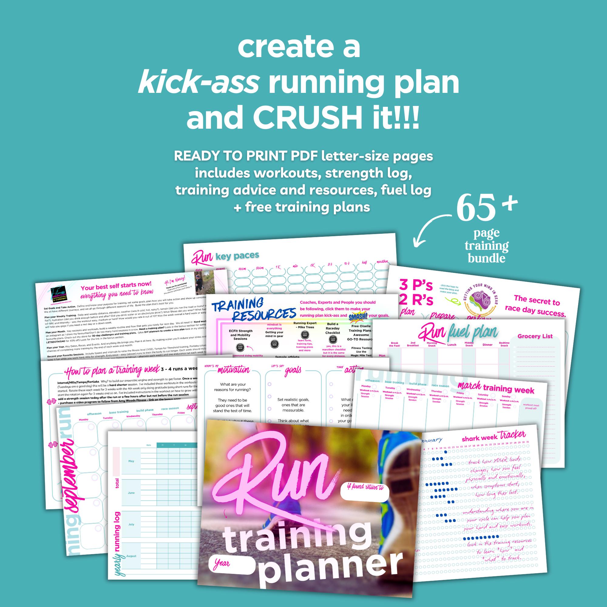 Printable Run Planner for the competitive DIY female runner training for a 5k, 10K, Half Marathon or Marathon and wants to plan her own training and smash it!