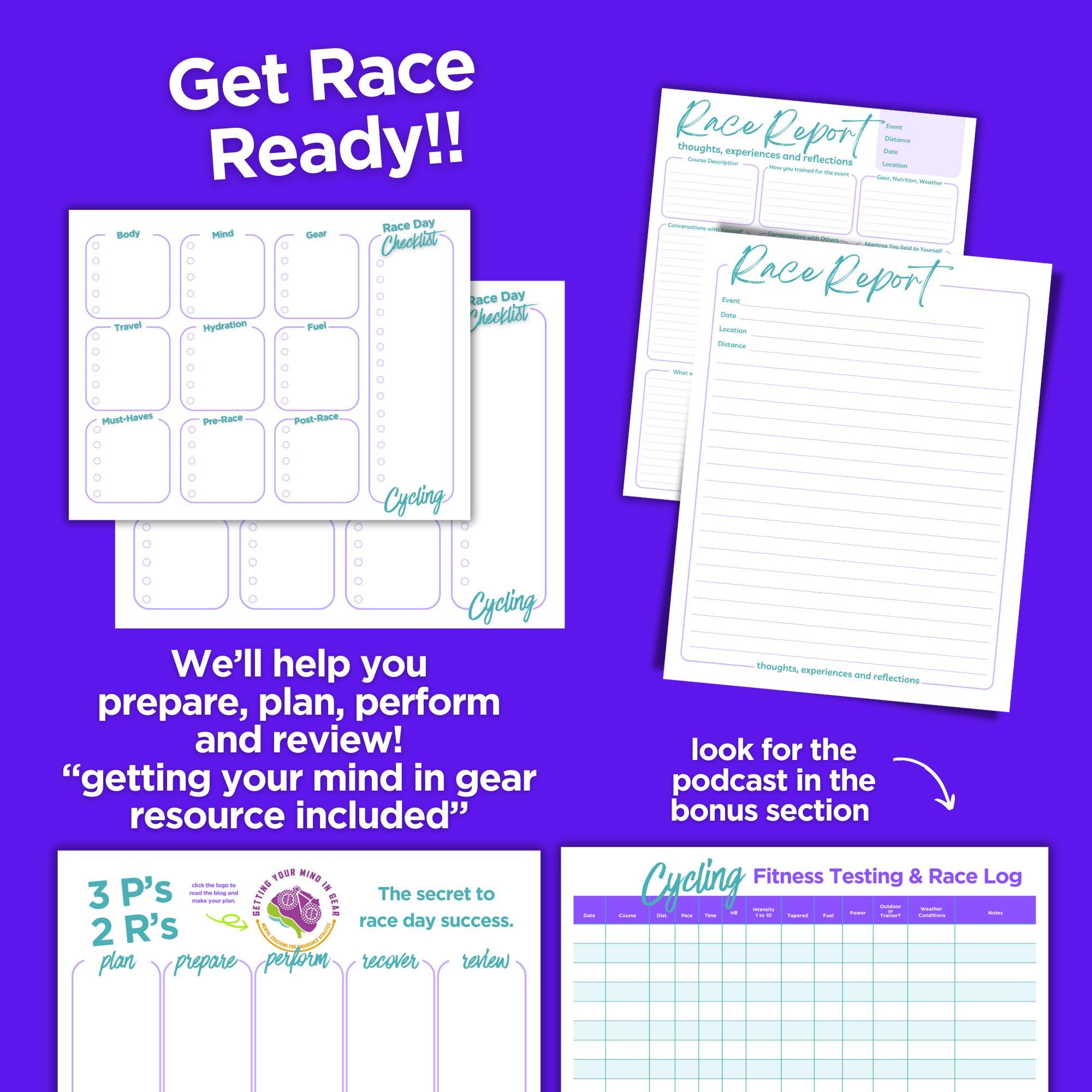 ✪ 3P's 2R's worksheet - prepare for race day and work on your mindset. Includes a link to "getting your mind in gear" website to help you Plan, Prepare, Perform, Recover and Review.