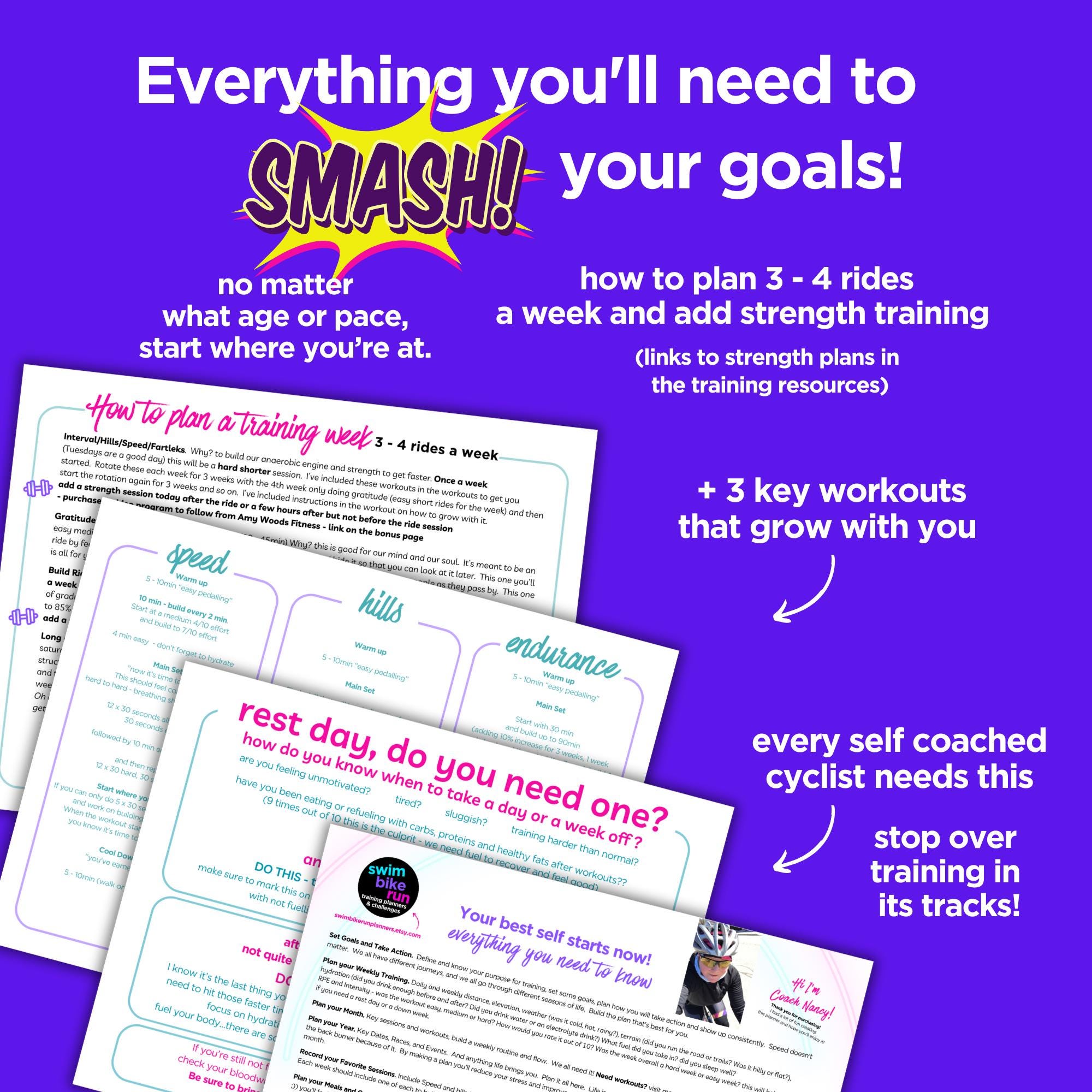 Printable PDF Cycling Log and Tracker for the competitive cyclist who wants to plan it and smash it!