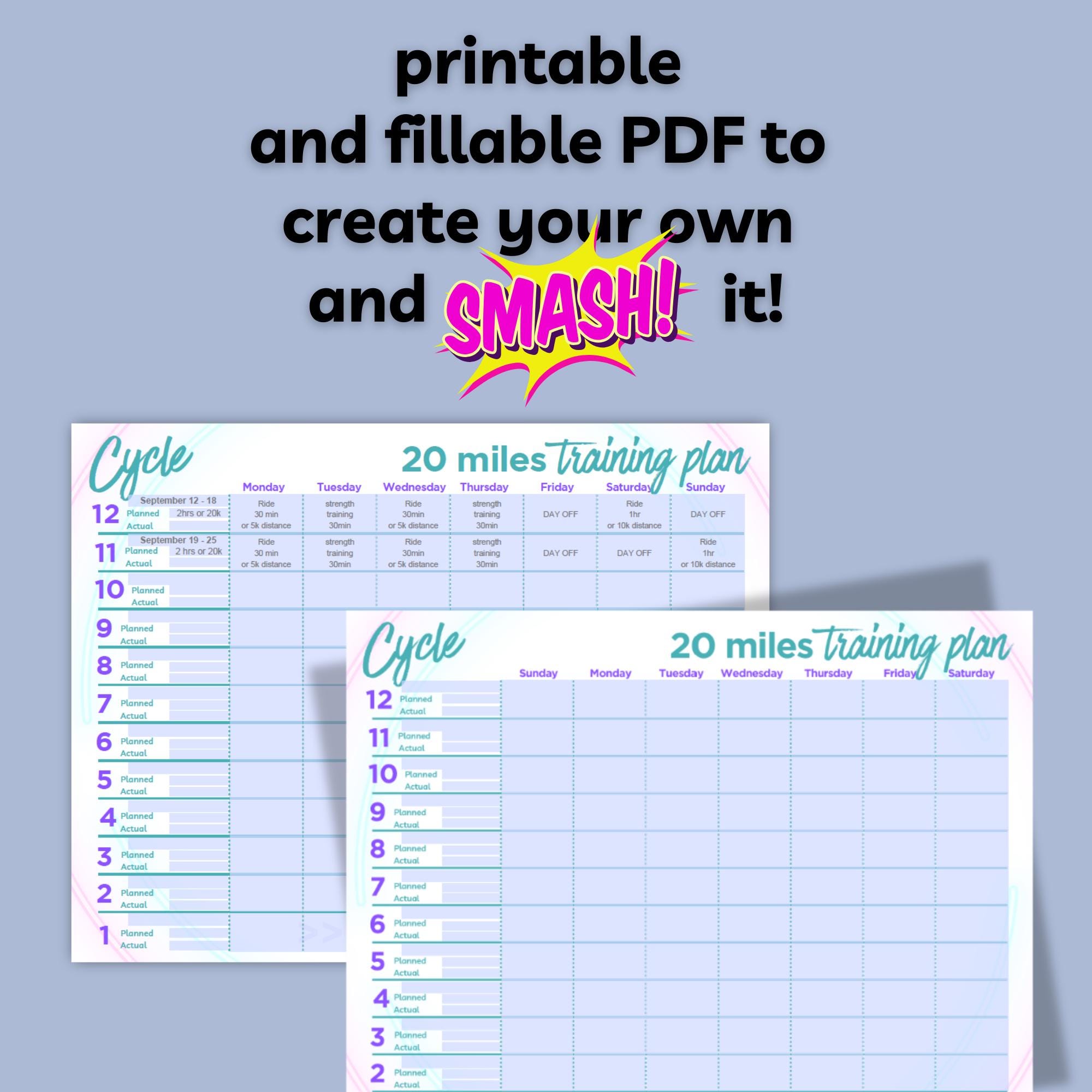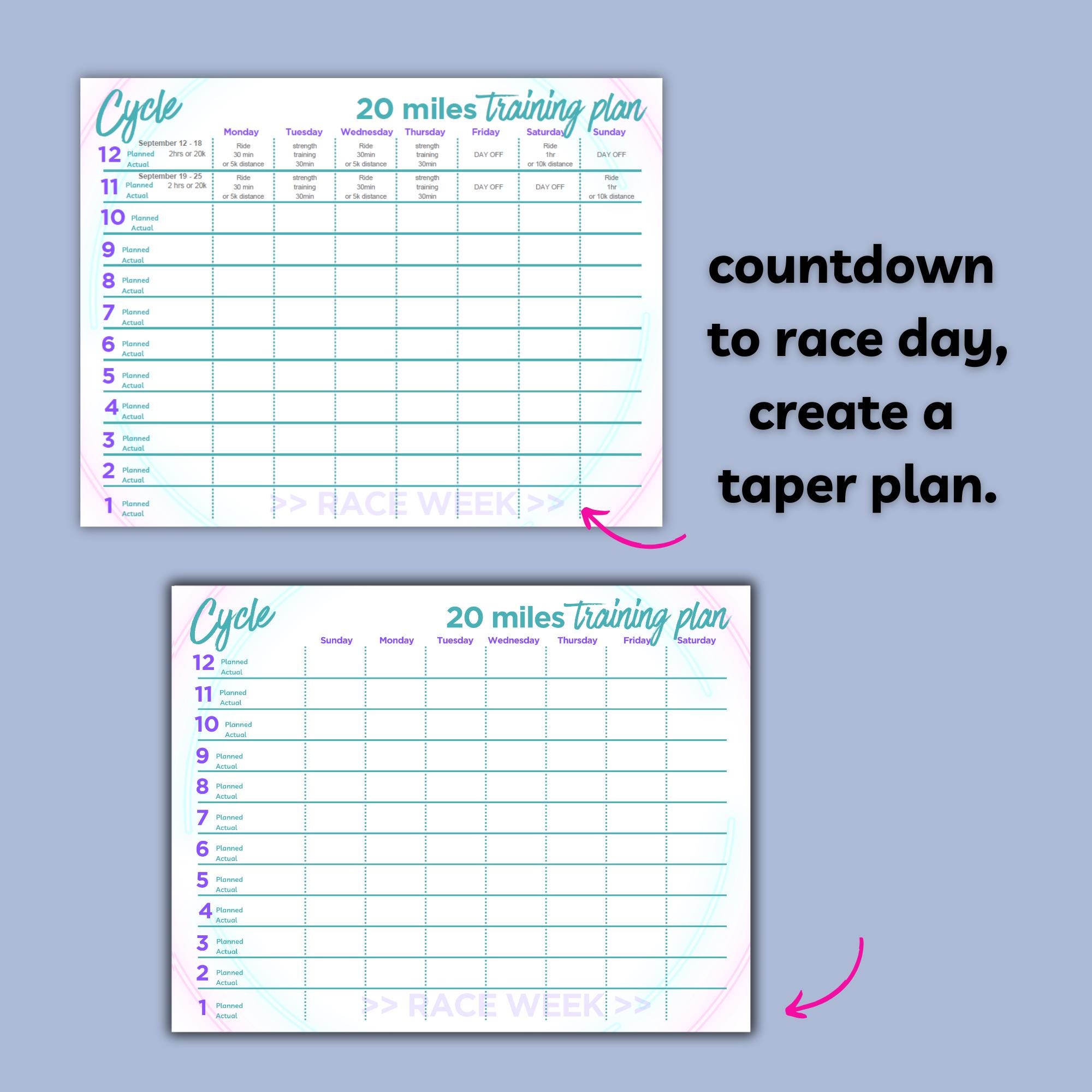 Create a 12-week or 3 month training plan for a 20 miler race and smash it!