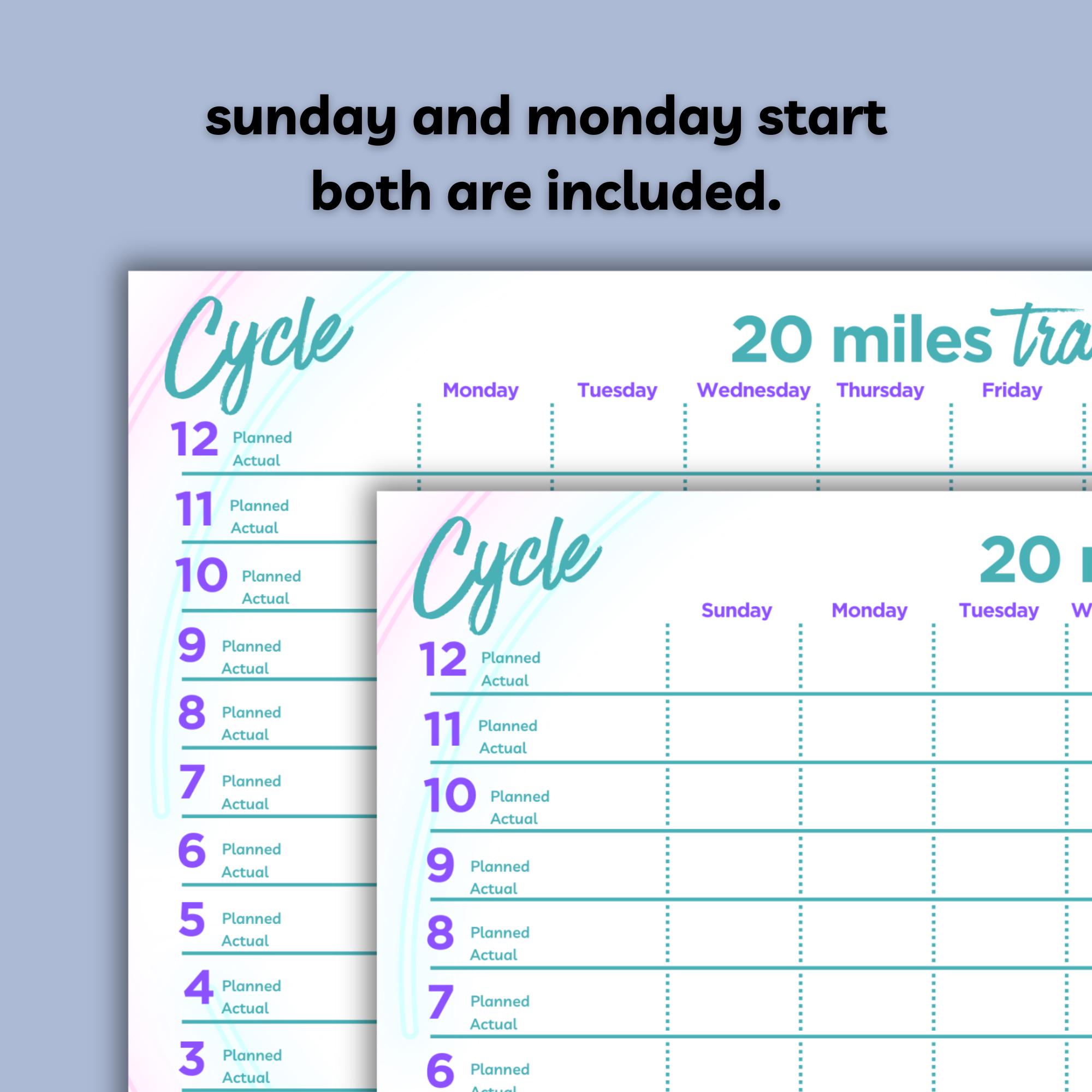 Includes 4 PDF files - sunday and monday starts