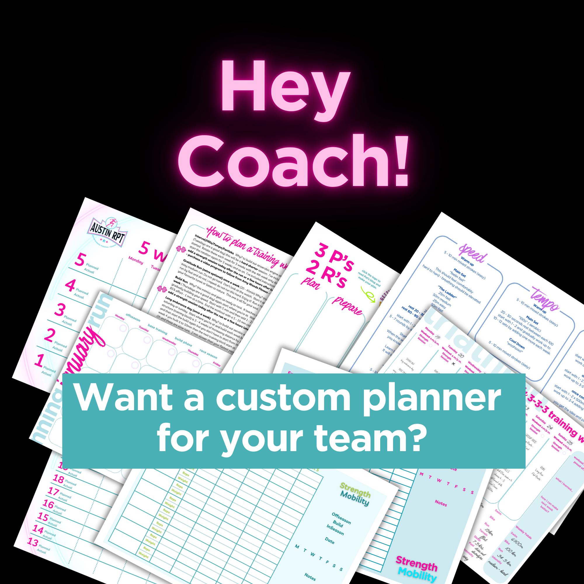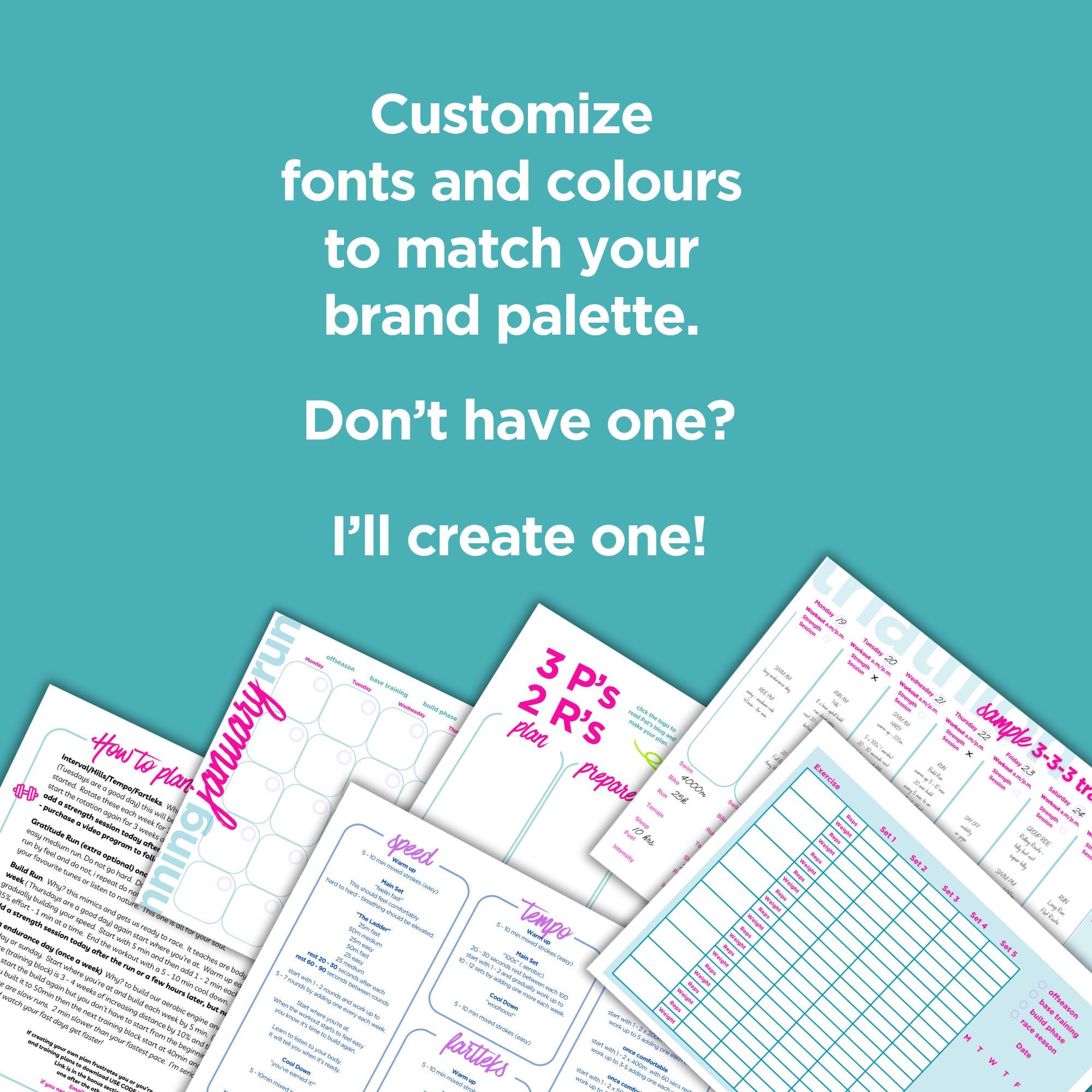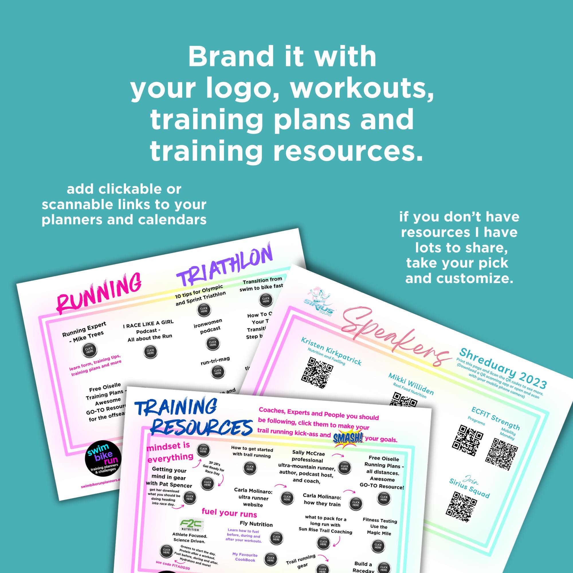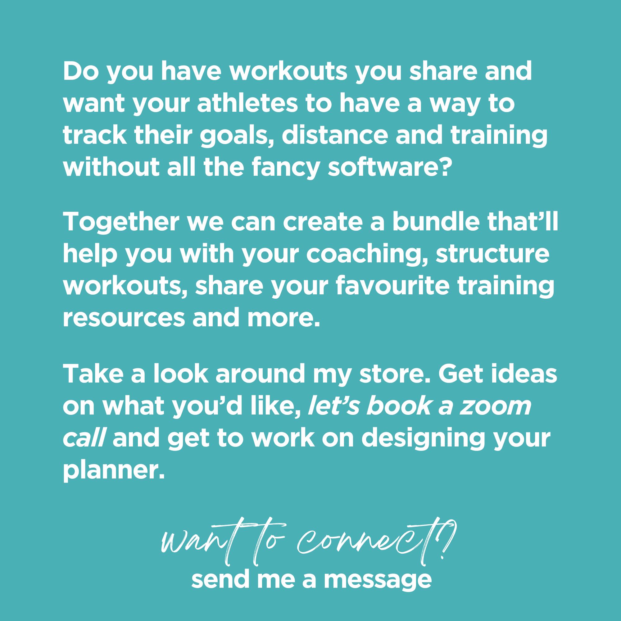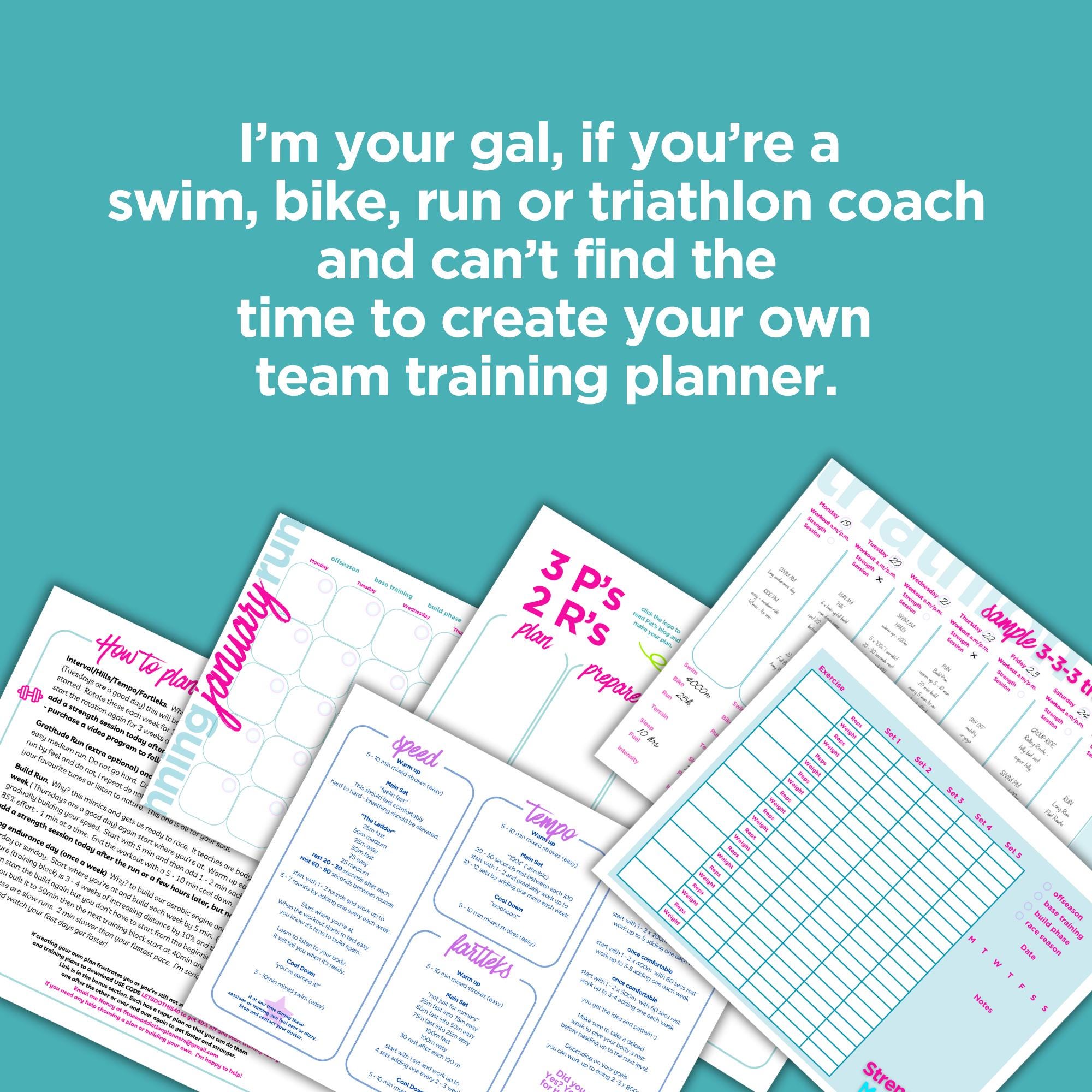 Customize a training planner or training bundle for your Swim, Bike, Run or Triathlon Team and Club. I'll add your logo, you choose the fonts, and customize the planner to your colours and anything else that suits your brand and style.
