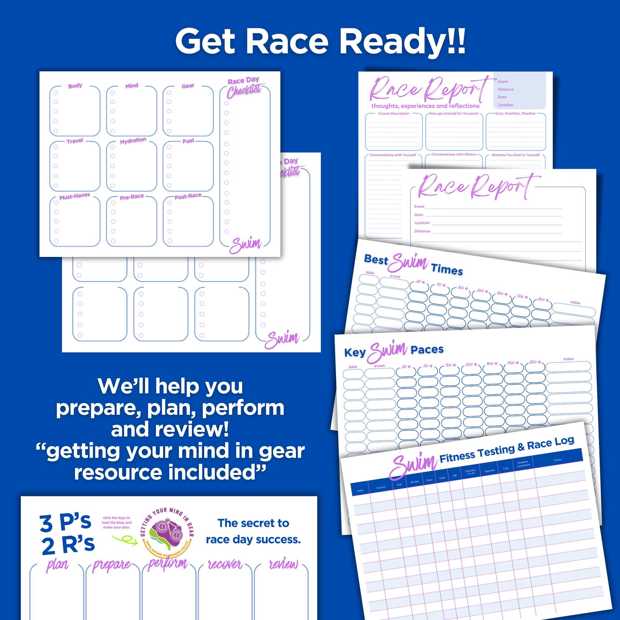 ✪ 3P's 2R's worksheet - get ready for race day and work on your mindset. Includes a link to "getting your mind in gear" website to help you Plan, Prepare, Perform, Recover and Review.