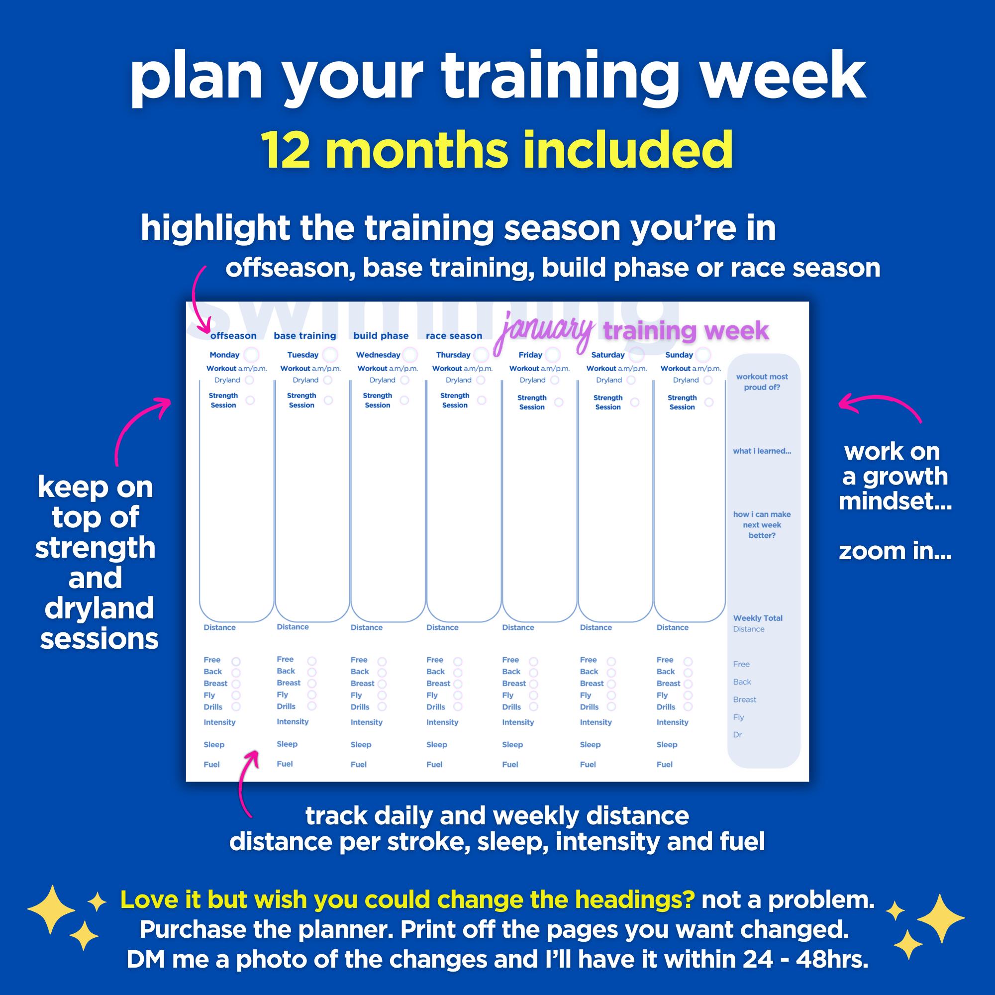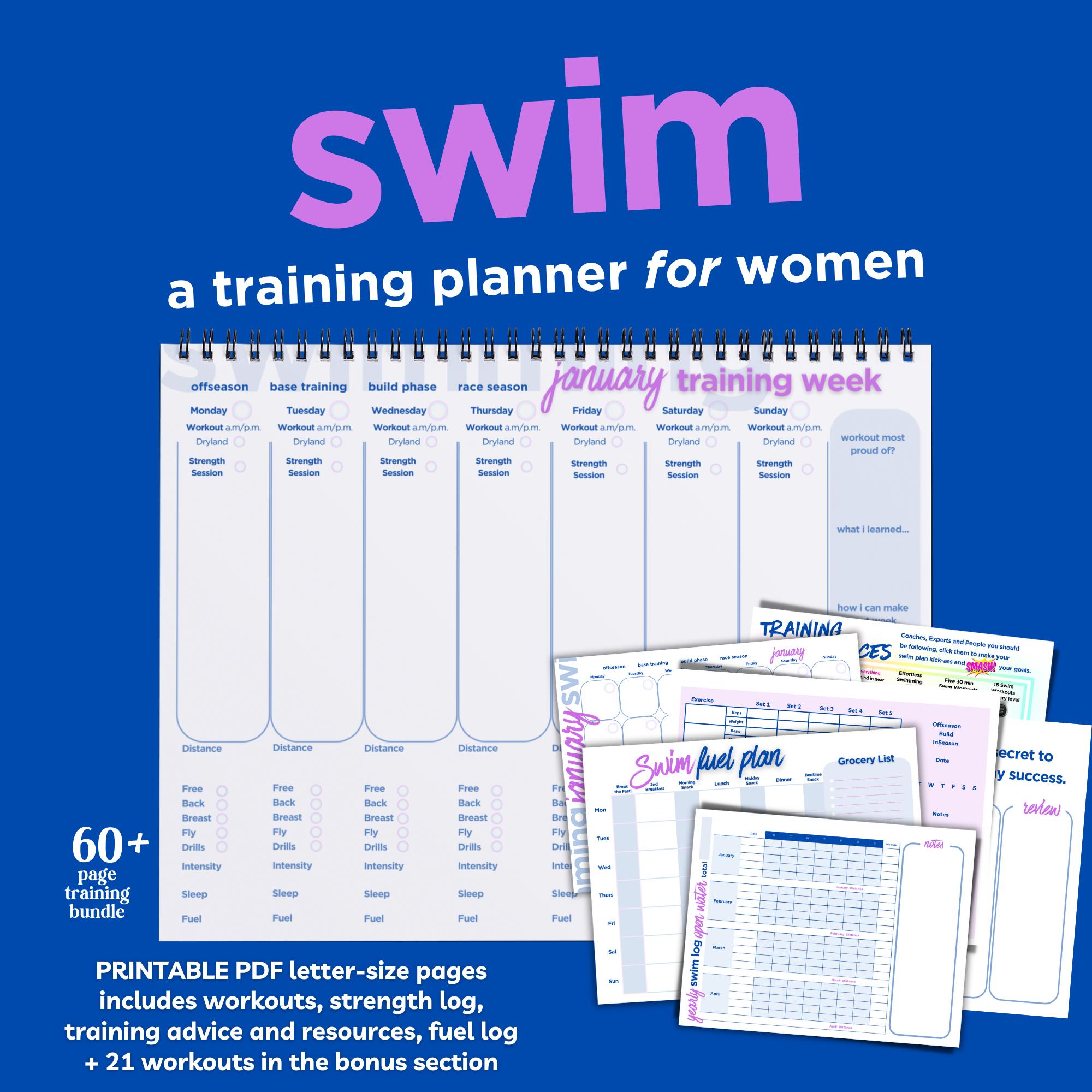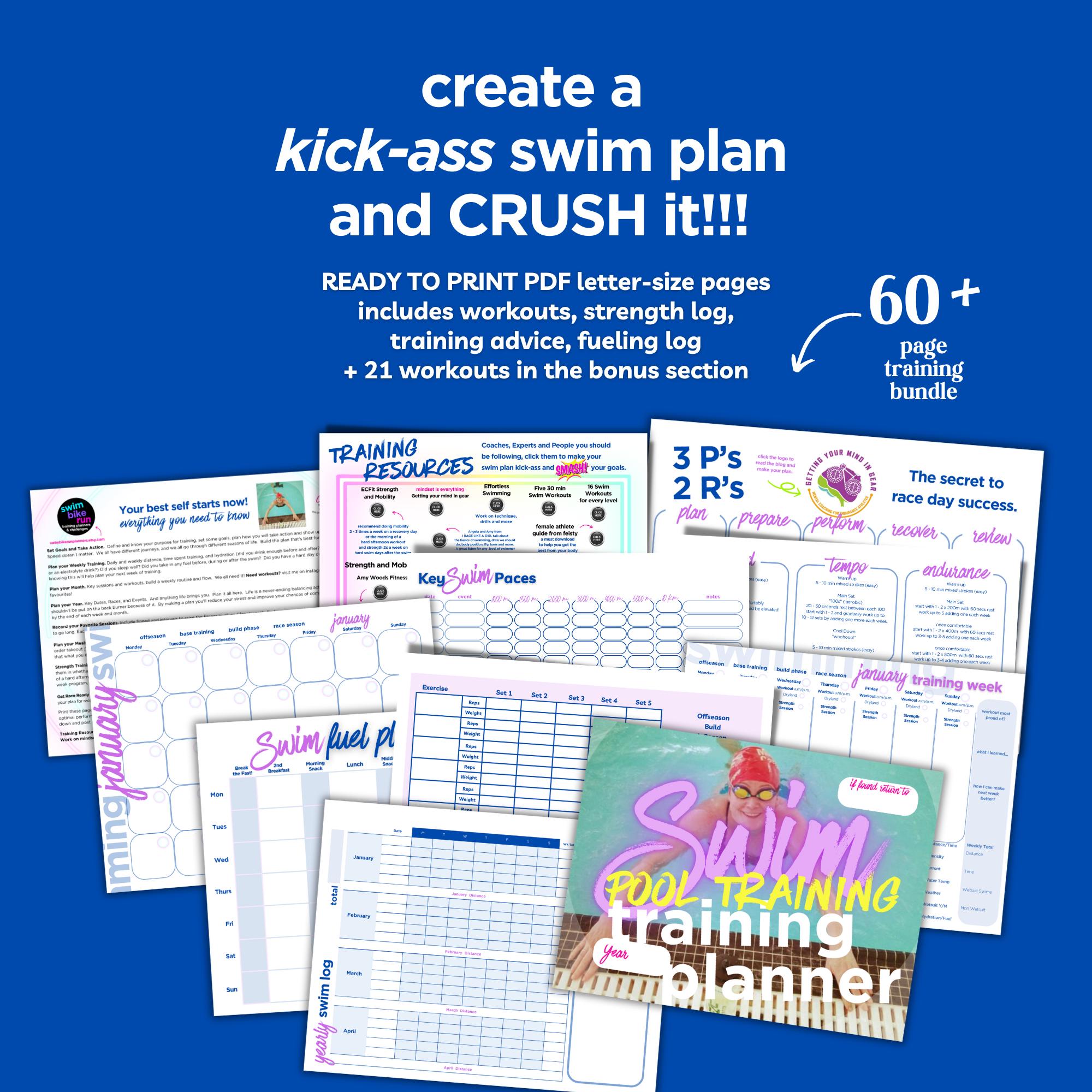 Printable Swim Planner for the competitive DIY swimmer who loves chasing the black line, wants to plan her own training and smash it.