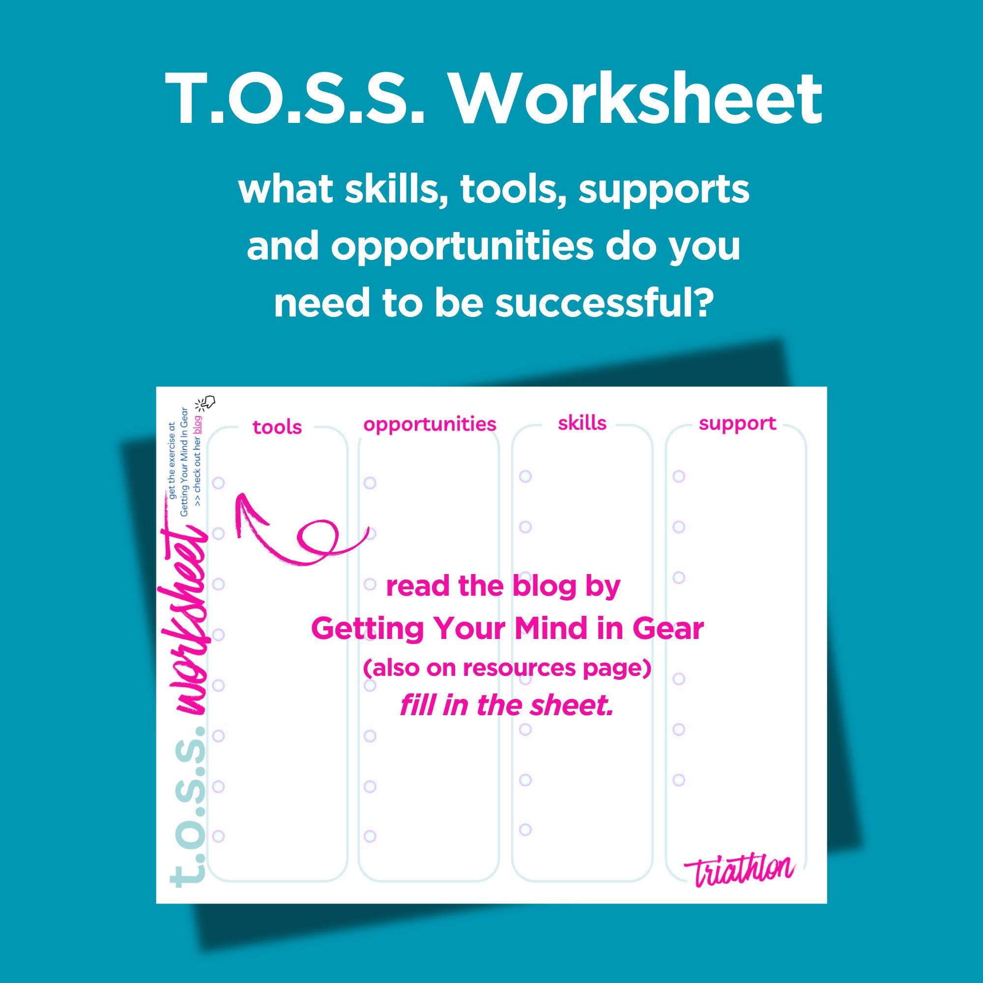 ✨ T.O.S.S Worksheet to find your tools, opportunities, skills and support you need to be successful (link to my favourite blog over at getting your mind in gear to help fill out the worksheet)