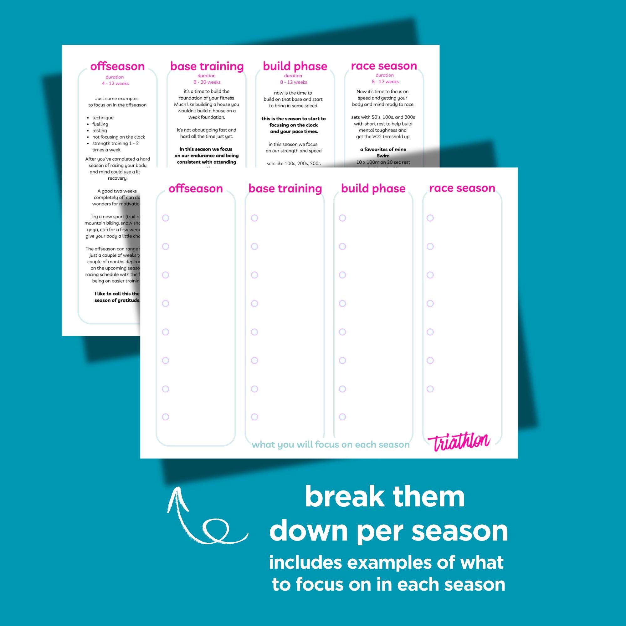 ✨ Breakdown goals for the offseason, base training, build phase and race season to stay motivated for the year