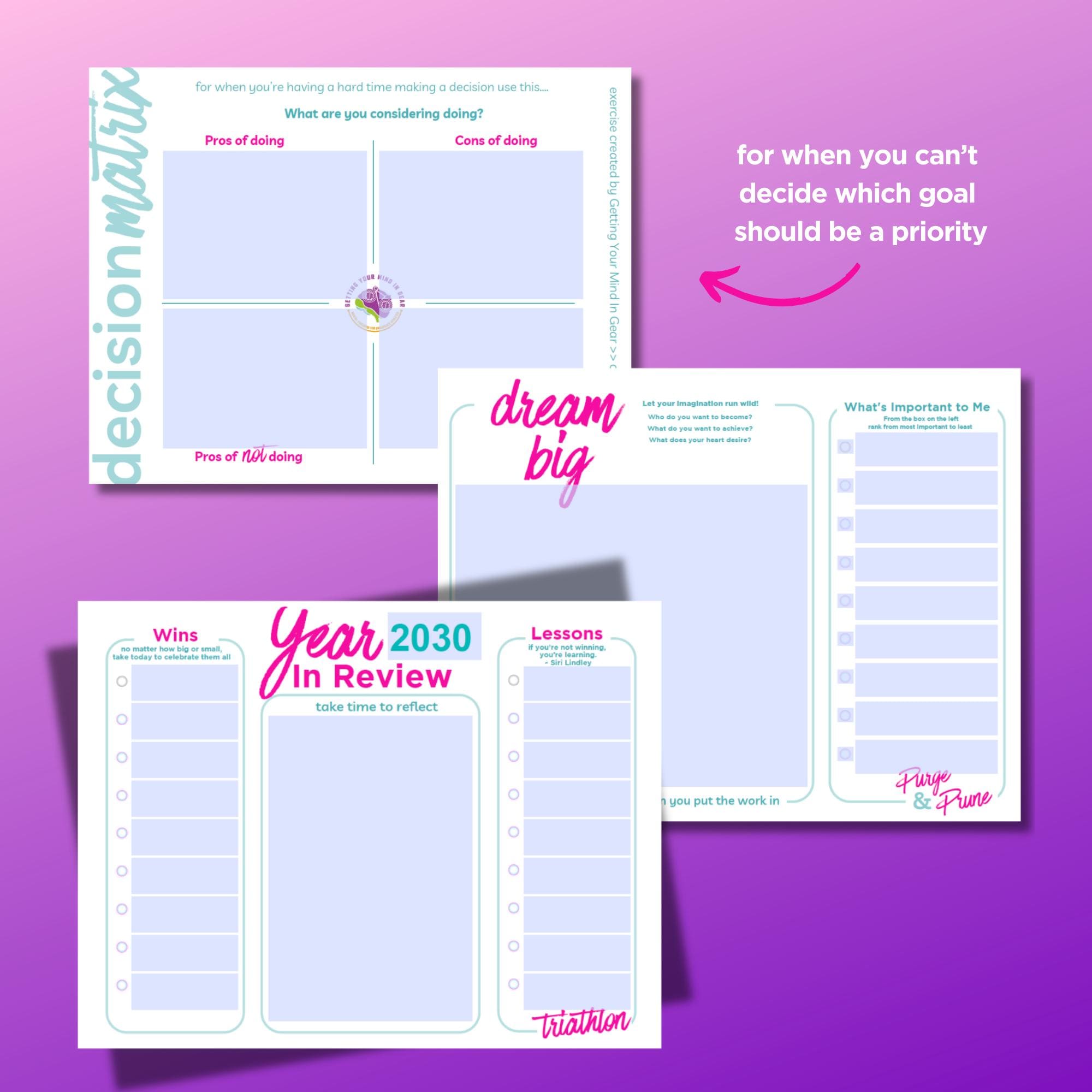 ✨ Dream Big Worksheet where you'll Purge & Prune what you really want to achieve this year.