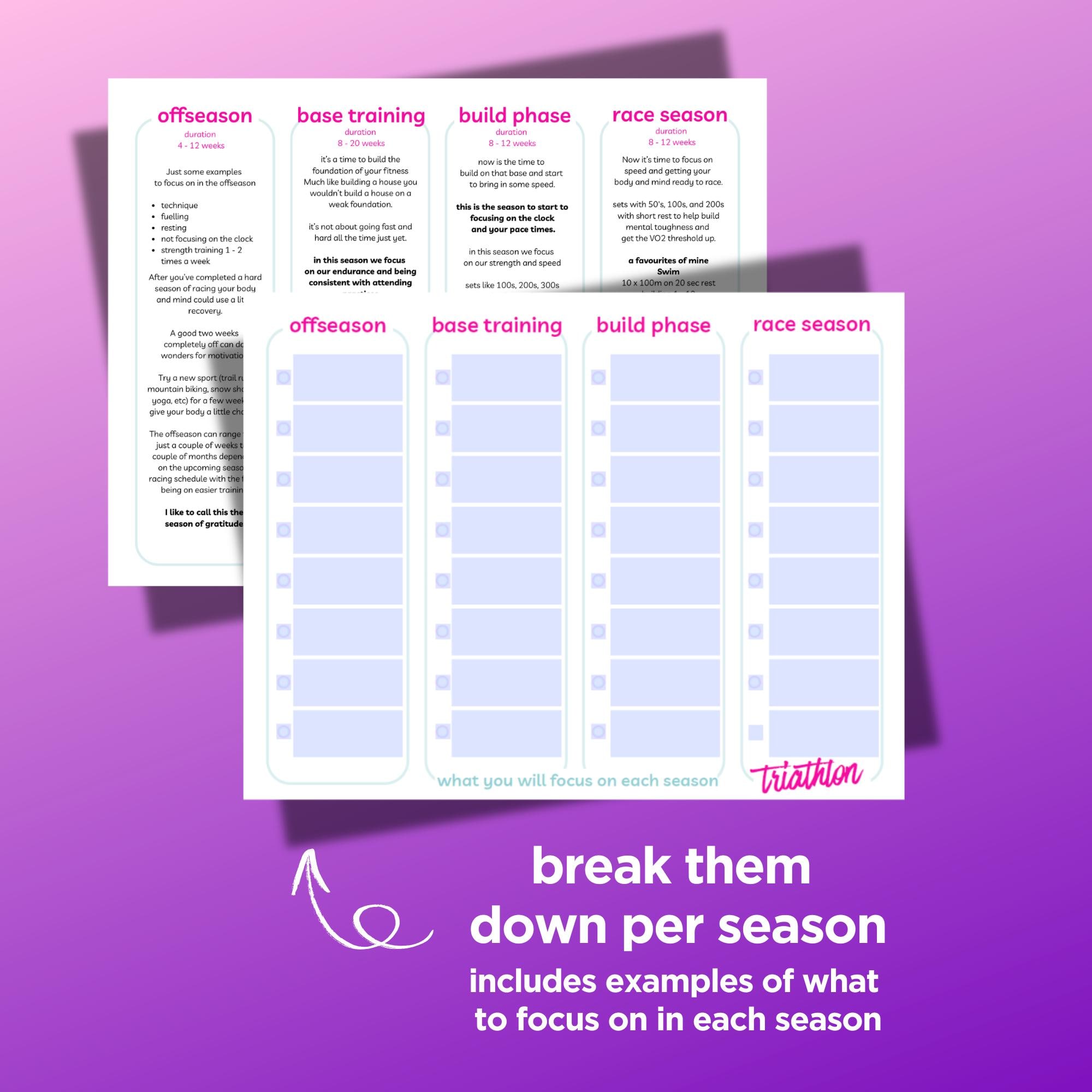 ✨ Breakdown goals for the offseason, base training, build phase and race season to stay motivated for the year