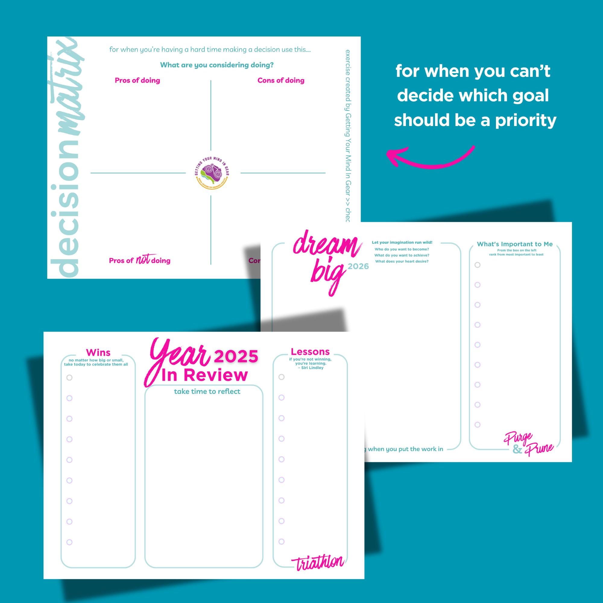 ✨ Dream Big Worksheet where you'll Purge & Prune what you really want to achieve this year.