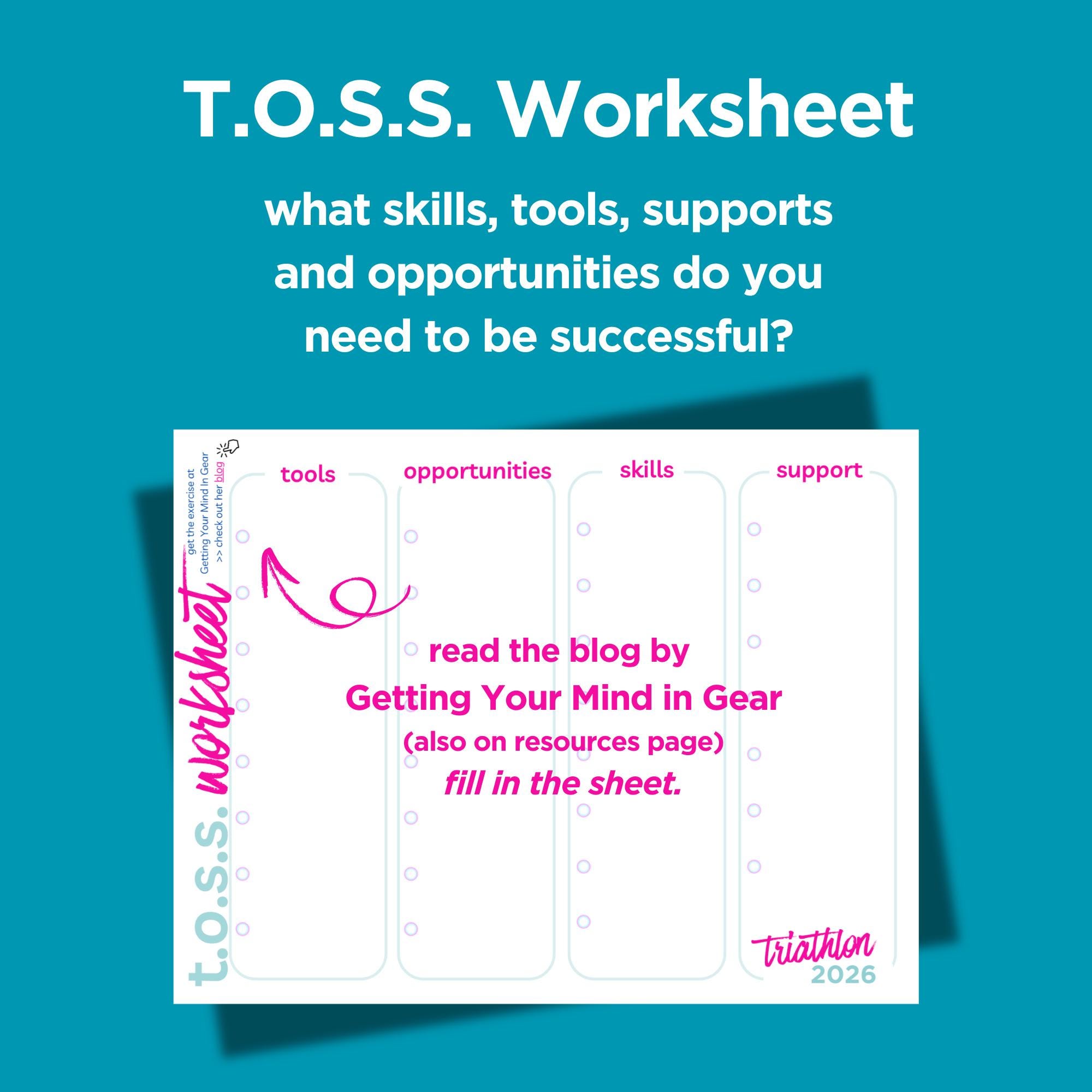 ✨ T.O.S.S Worksheet to find your tools, opportunities, skills and support you need to be successful (link to my favourite blog over at getting your mind in gear to help fill out the worksheet)