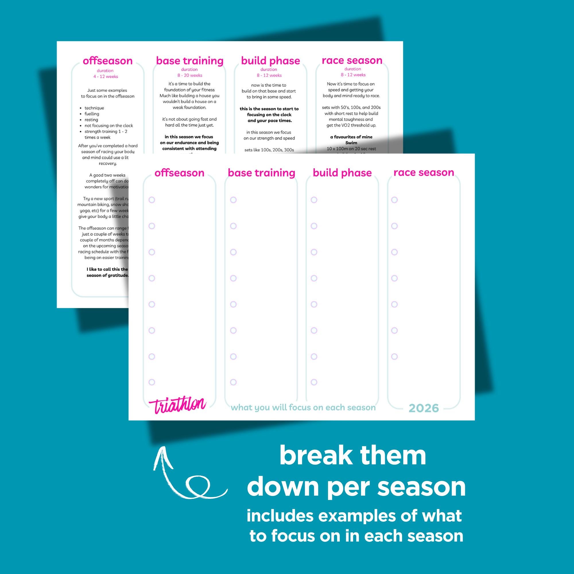 ✨ Breakdown goals for the offseason, base training, build phase and race season to stay motivated for the year